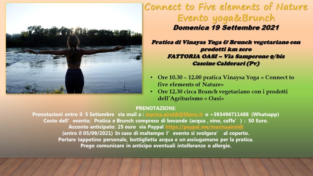 •Ore 10.30 – 12.00 pratica Vinaysa Yoga « Connect to five elements of Nature»
