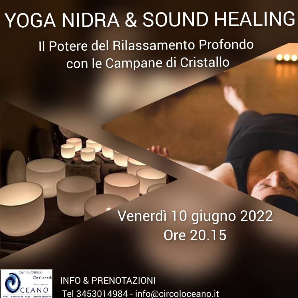 - YOGA NIDRA & SOUNDHEALINGYoga Nidra &Sound Healing nuovi appuntamenti da Ottobre! Nuove date: 14 Ottobre-18 Novembre-2 Dicembre Il potere del rilassamento profondo con le campane di cristallo Venerdì 10 e 24 Giugno 2022 h. 20.15 Ti invitiamo a questa magica serata, aperta a tutti, per accompagnarti in un rilassamento profondo con l’accompagnamento delle Campane di Cristallo. Una sola…